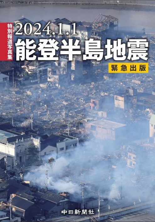 石川県内を中心に建物の損壊が多発し、 240人以上が犠牲となった被害の詳細や被災地の生活、警察や消防、自治体職員の活動などを撮影した写真を、 「倒壊」「火災」「津波」「爪痕」 「孤立」「救援」「避難」「支援」 の項目に分けて編集。 現地記者のコラムや、ゆかりの著名人のメッセージなど、新聞紙上の一部も再録しています。