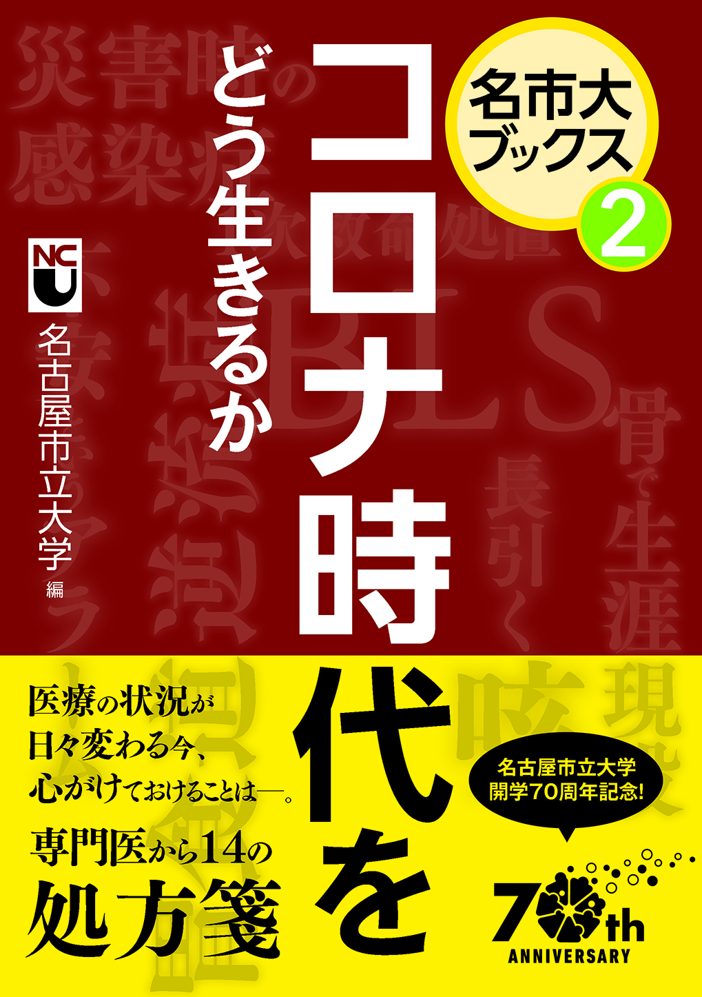 2020年に開学70周年を迎える名古屋市立大学は、新型コロナウイルス感染症の影響が続き、人々が健康への不安を抱える中社会貢献活動の一環として、本シリーズ「名市大ブックス」を刊行しました。 第2弾となる本書は、新型コロナウイルス感染症と救急医療の現場で戦う医師たちをはじめ、ストレスや孤独による「不安」とのつきあい方、新型コロナウイルス感染症の重篤化を招くとされるタバコや肥満について、咳が慢性的に出てしまう咳ぜんそくや胃食道逆流症のこと、今心掛けたい口腔ケアや栄養摂取についてなど、さまざまなトピックを紹介しています。